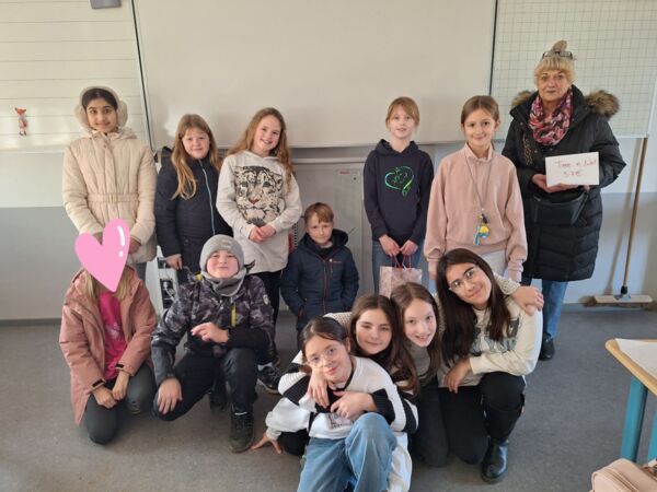 Die "sozial-genial-AG" unter der Leitung von Frau Tsiakiraki freute sich, eine Spende für den Verein "Tiere in Not" zu übergeben zu können.